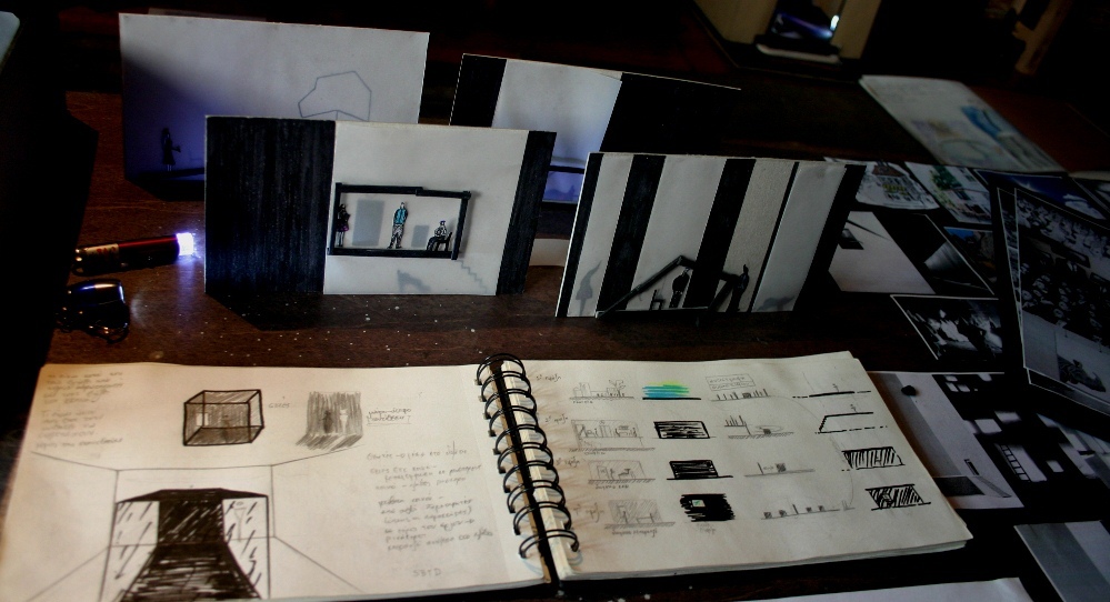 Η Έκθεση περιελάμβανε τρισδιάστατες μακέτες σε κλίμακα, τρισδιάστατες κατασκευές, σχέδια, collages, σχέδια για κουστούμια, story boards, portfolios κ.α.