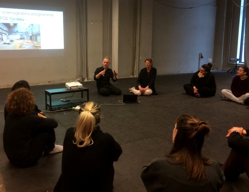 με την κ.Tjallien Walma van der Molen (Lecturer MFA Scenography, HKU) και τον κ. Maze de Boer (Designer and Lecturer at the Master Scenography HKU) που έγινε στην Αθήνα το 2019 στο χώρο της Ομάδας Χορού Griffon, κοντά στον Σταθμό μετρό Πανόρμου