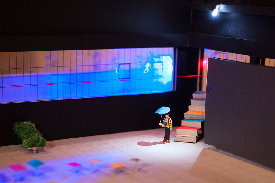 (φωτογραφία: Άρτεμις Παπαγεράκη, από τη μακέτα θεάτρου στην οδό Πειραιώς 260 σε κλίμακα 1:50 από τη συμμετοχή του LSA με το έργο «Όρνιθες» του Αριστοφάνη σε έκθεση στην PQ 2015 και στην έκθεση [ΟUT]TOP/AS στο Μουσείο Μπενάκη 2016)
